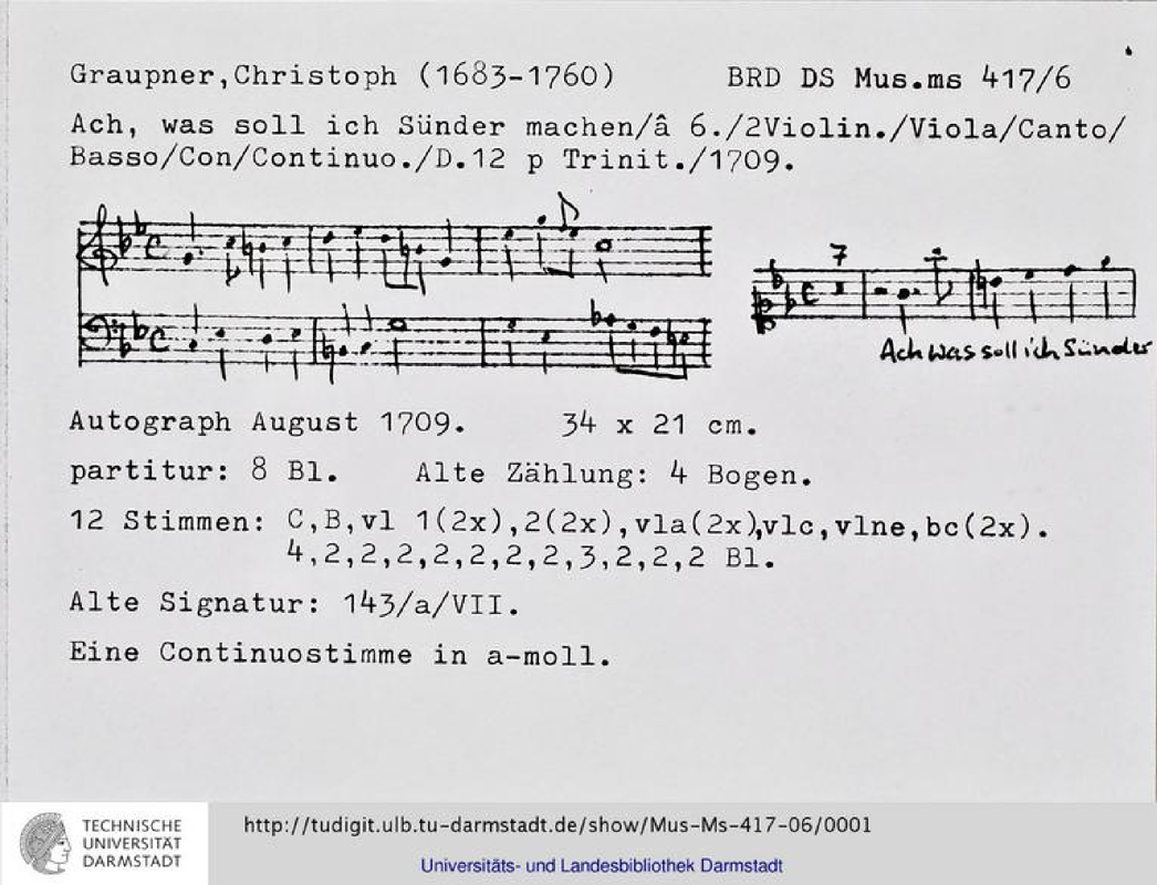 Ach was soll ich Sünder machen, GWV 1153/09b (Graupner, Christoph)