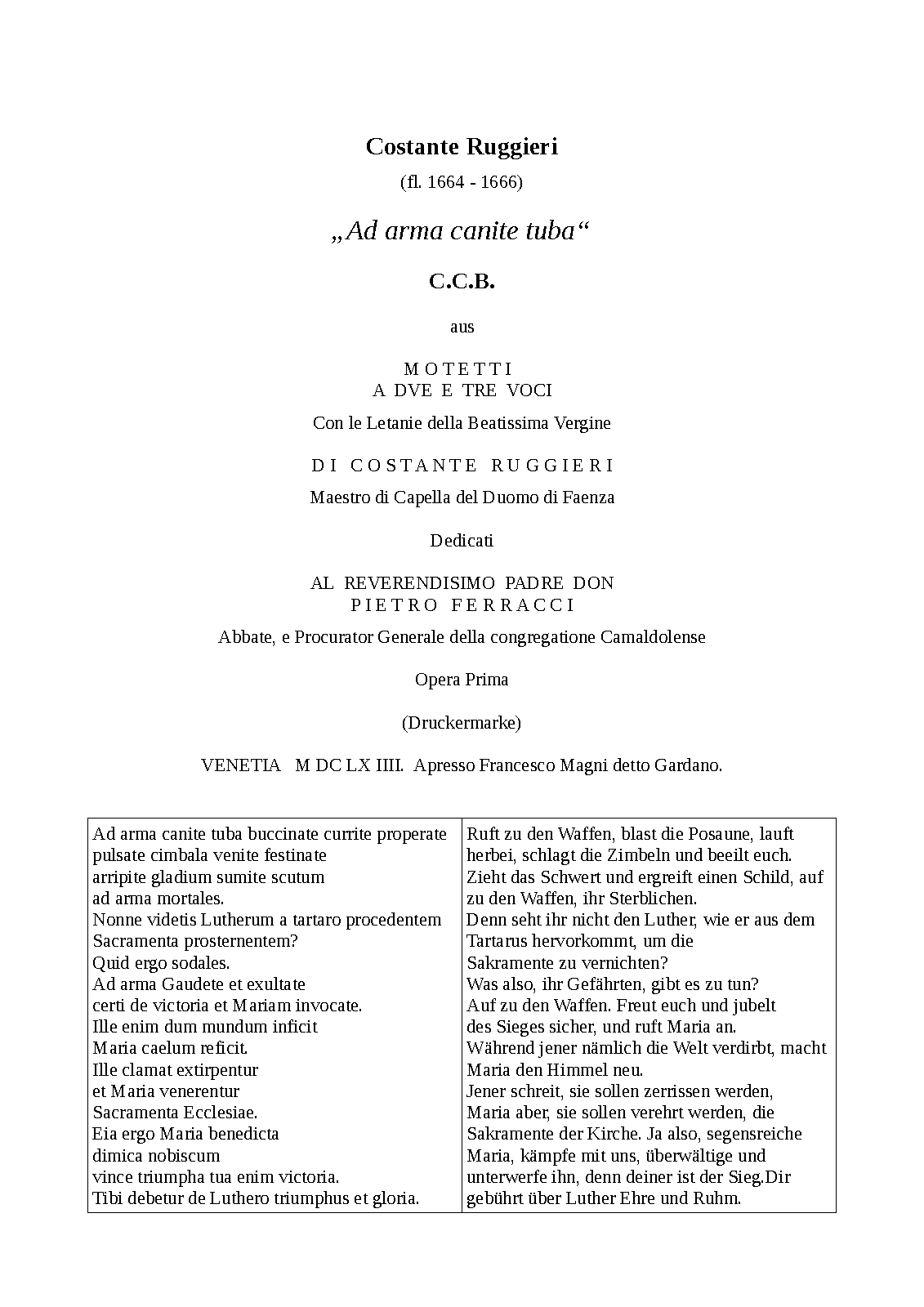| Work Title | Ad arma canite tuba |