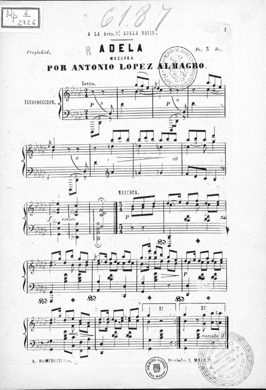 | Dedication | A la Srta. Dª. Adela Daviu |