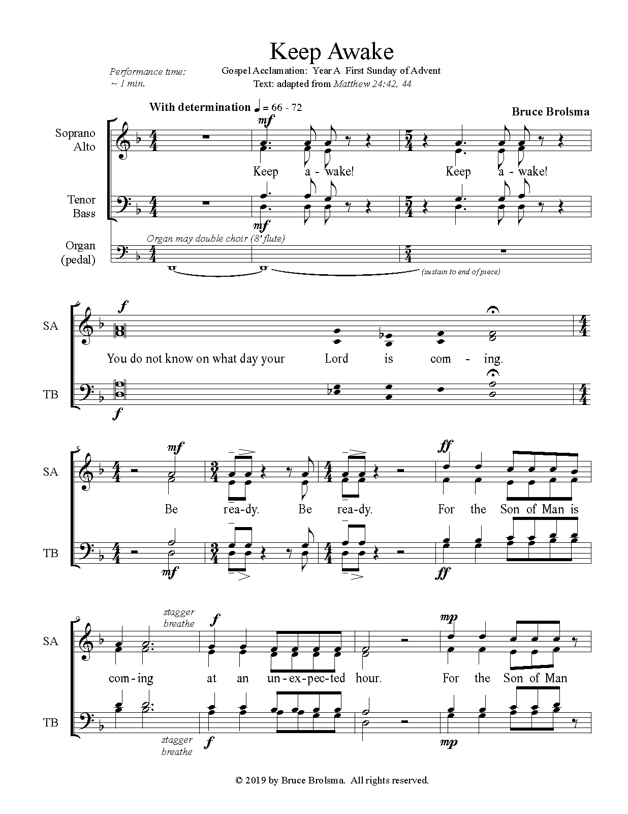 These short pieces are intended to be sung in place of the Alleluia, directly before the Gospel is read. Each piece notes the lectionary year and the week of Advent for which it is intended.