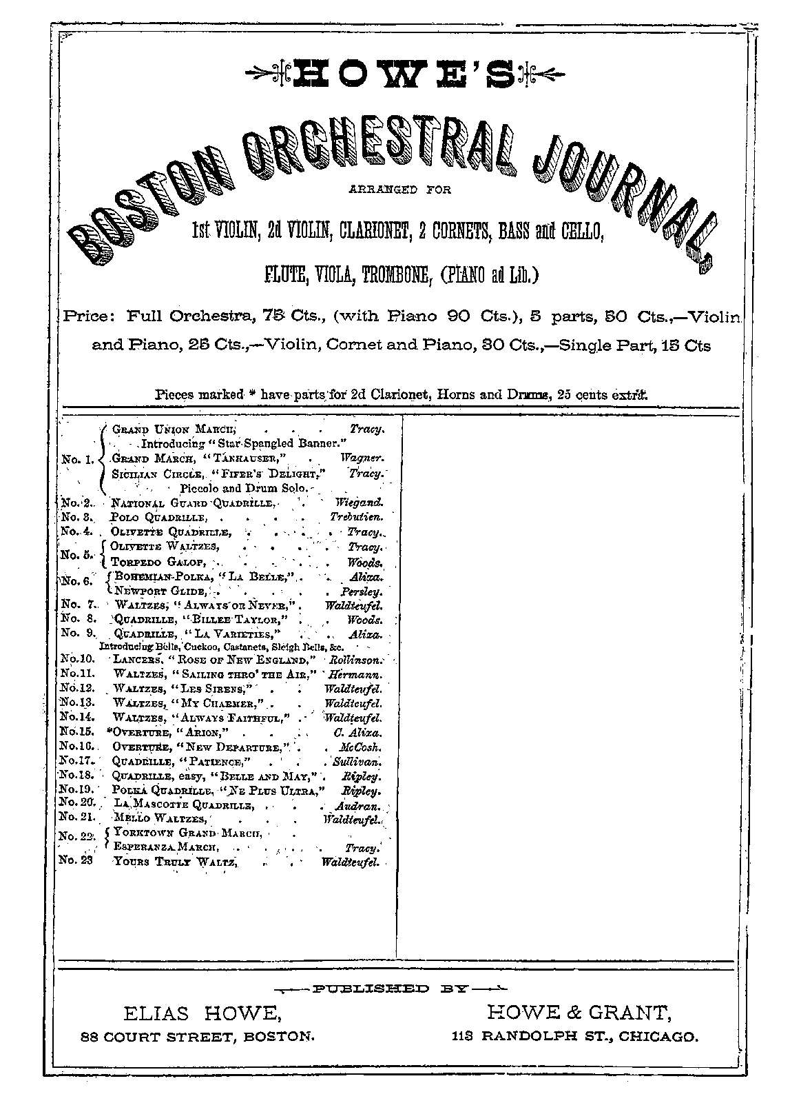 | Extra Information | Clarinet No.2, horns, and drums appear to have been available as optional parts. |