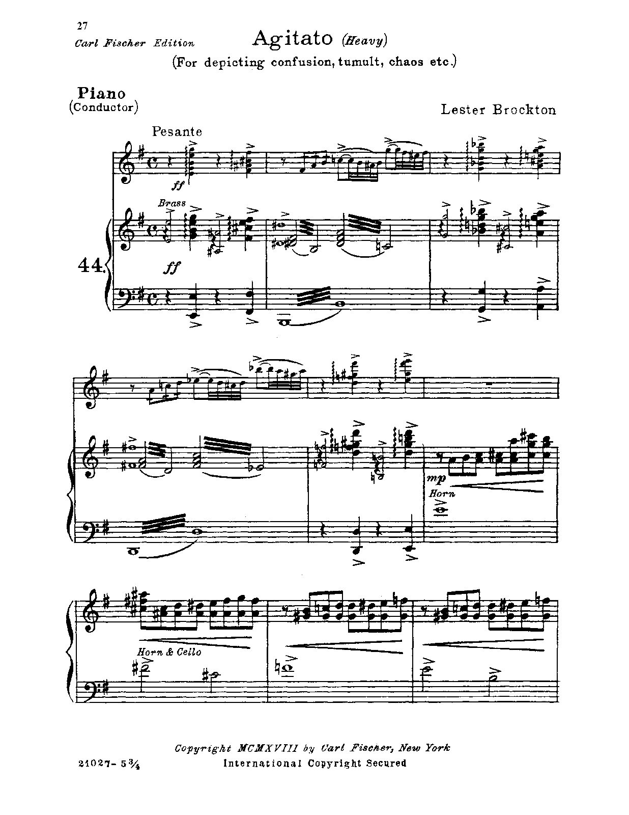 | Extra Information | Intended for use as accompaniment for silent movies. Published under the pseudonym Lester Brockton. |