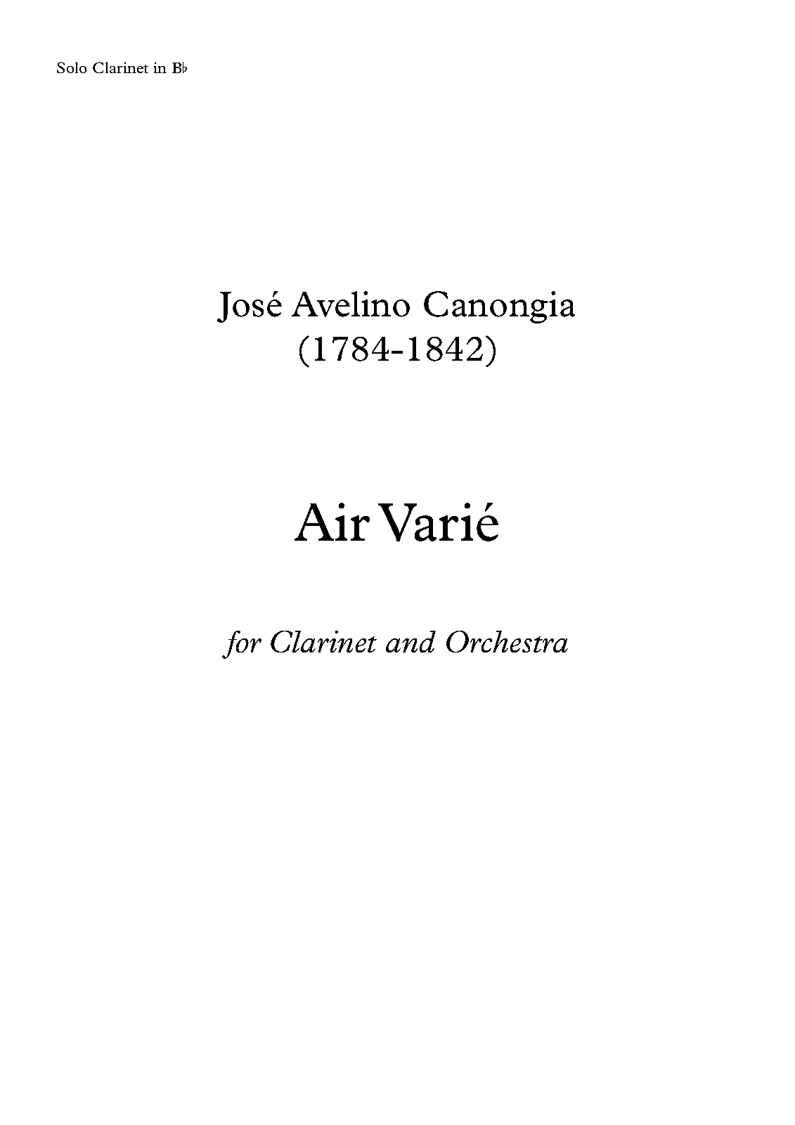 | Work Title | Air varié pour la Clarinette avec acc. de Grande Orchestre |