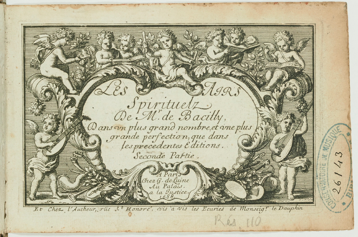 | Alternative. Title | Premier Livre d'airs spirituels de feu M. de Basilly a deux parties |