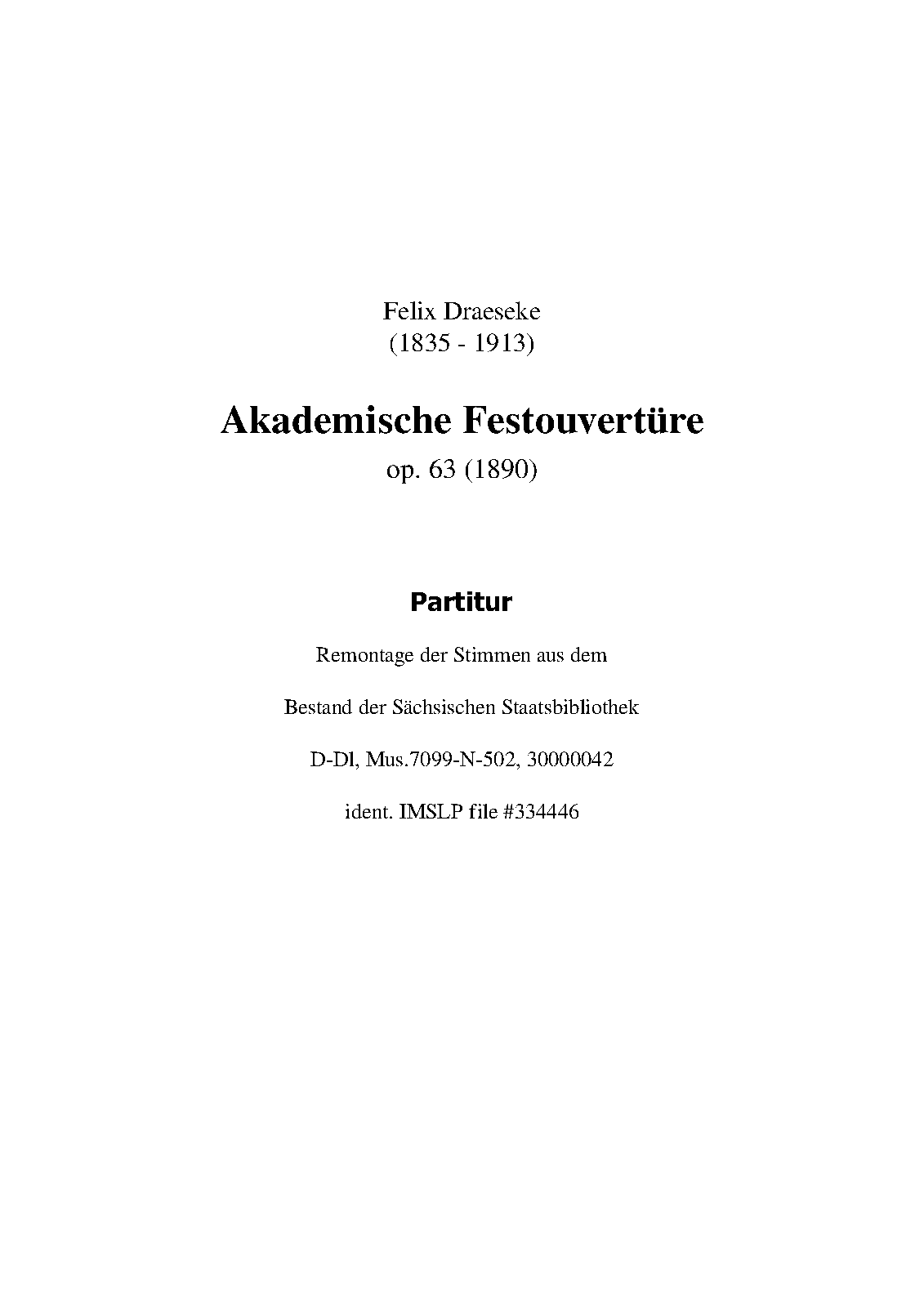| Work Title | Akademische Festouvertüre (per Draeseke Society site) |