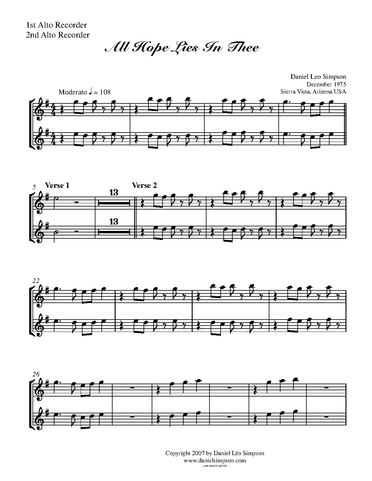| Instrumentation | Mixed Chorus (SATB) 2 Alto Recorders, Piano, Acoustic Guitar, Electric Bass, Drums |