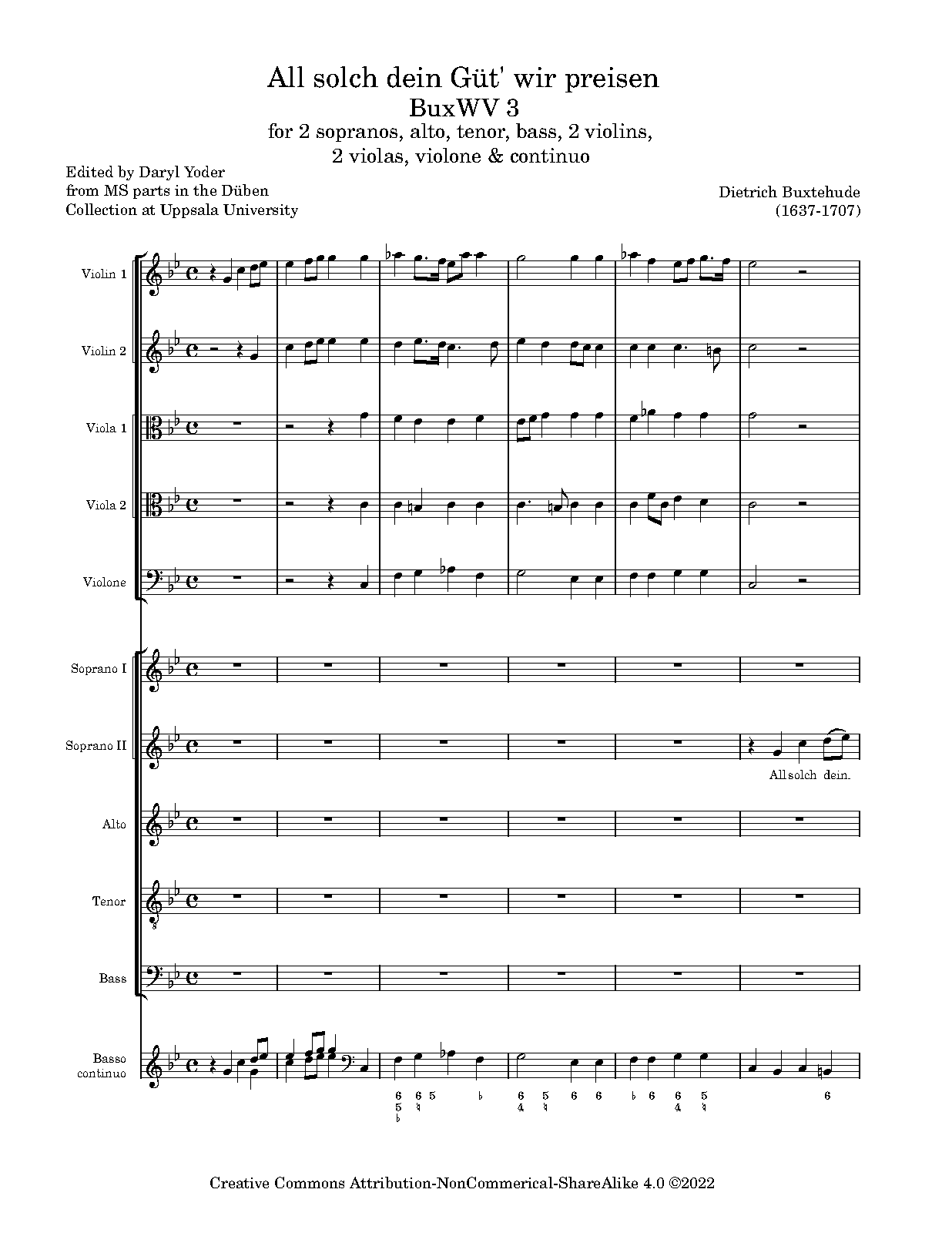 | Instrumentation | 2 sopranos, alto, tenor, bass, 2 violins, 2 violas, violone, continuo |