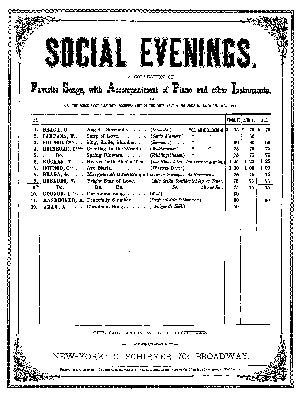 | Genre Categories | Songs; For voice, cello, piano; For voices with solo instruments; |