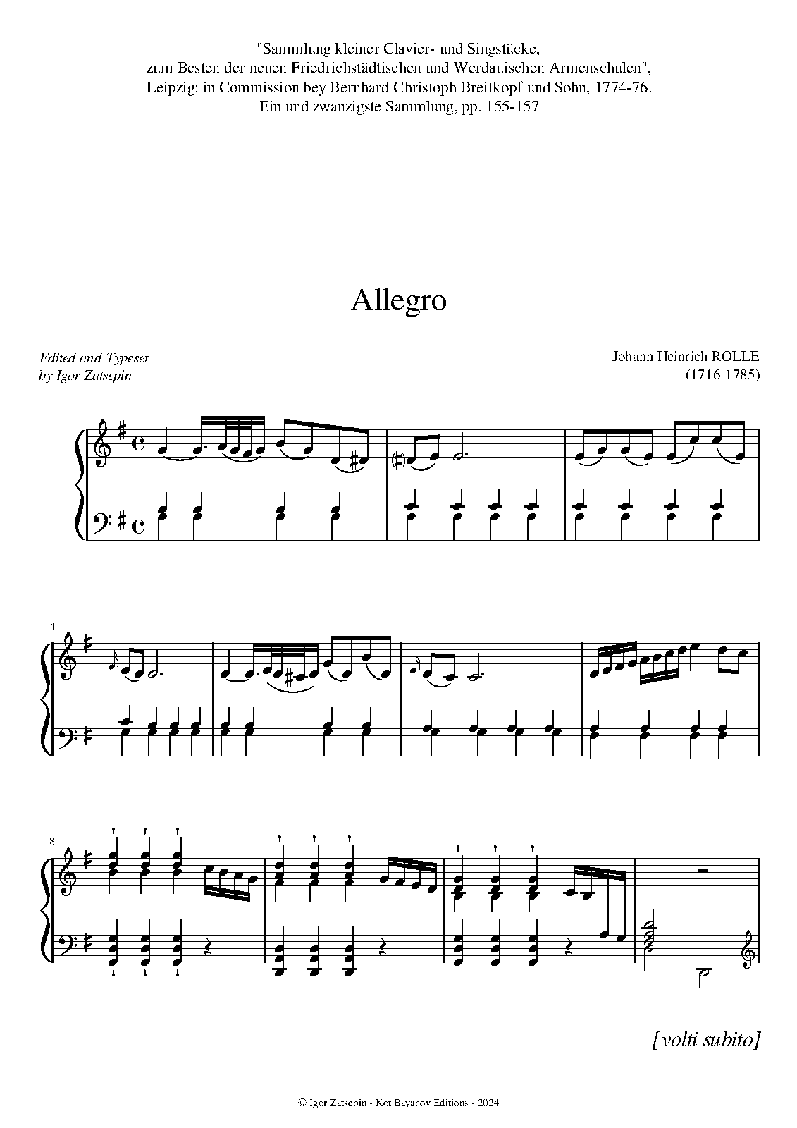 | Extra Information | "Sammlung kleiner Clavier- und Singstücke...", Breitkopf und Sohn, 1774-76 |