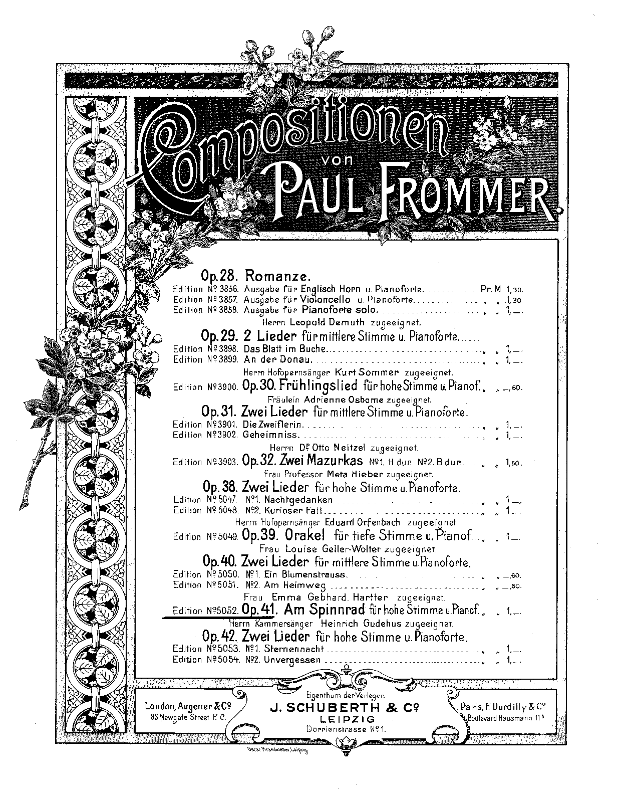 | First Publication | 1899 – Leipzig: J. Schuberth & Co. |