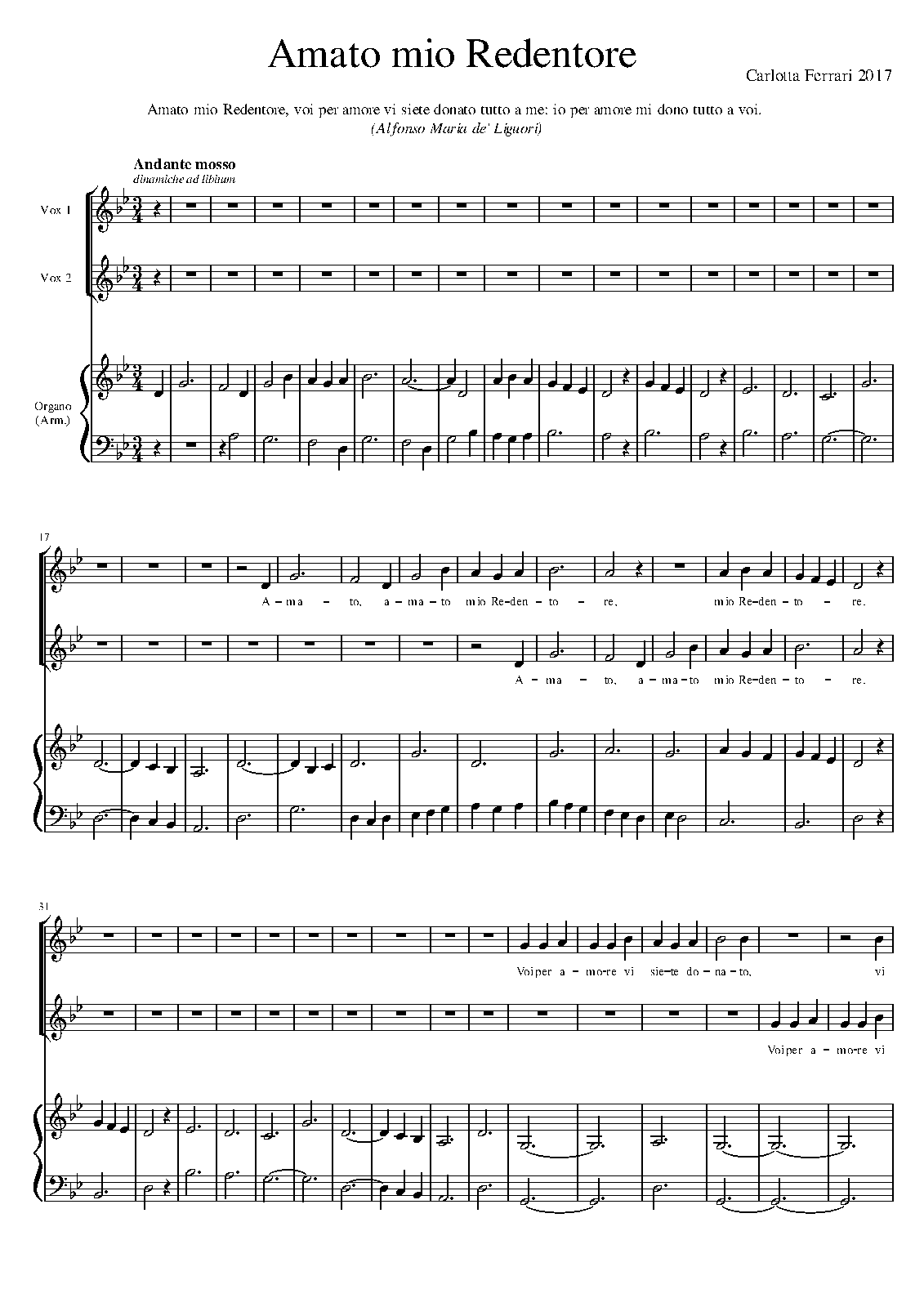 Choral+organ piece for an equally divided chorus (not double choir though). It can be female, male or mixed, according to what is needed.