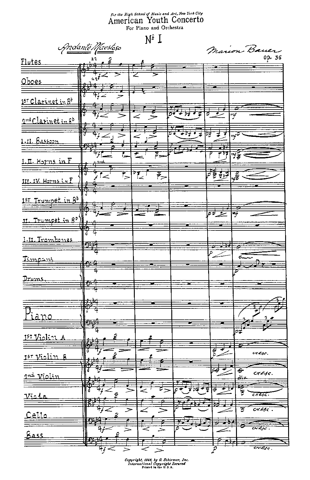 Piano and Orchestra 2 Flutes, 2 oboes, 2 clarinets, 2 bassoons, 4 horns, 2 trumpets, 2 trombones, timpani, percussion, orchestral piano (separate from the solo piano), strings