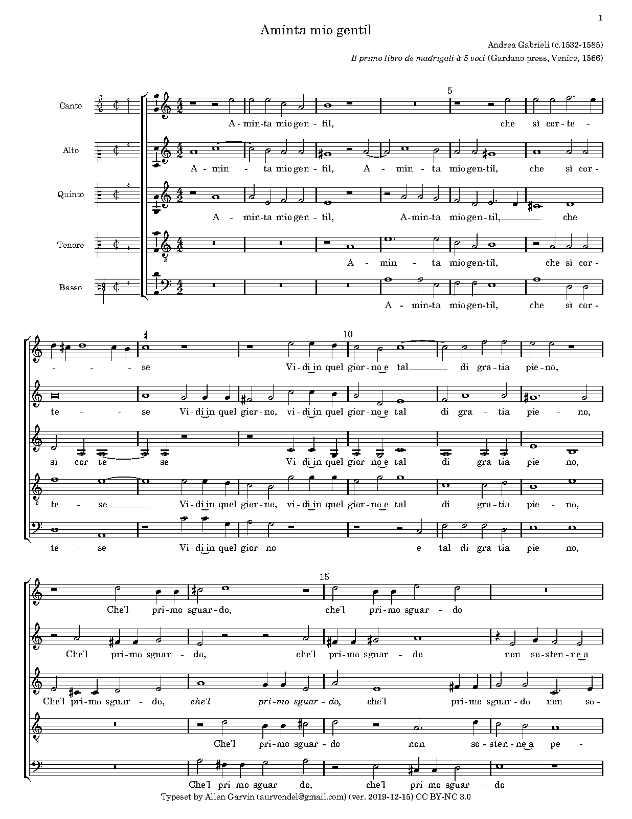 1566 in Il primo libro de madrigali à 5 voci (Antonio Gardano press, Venice)