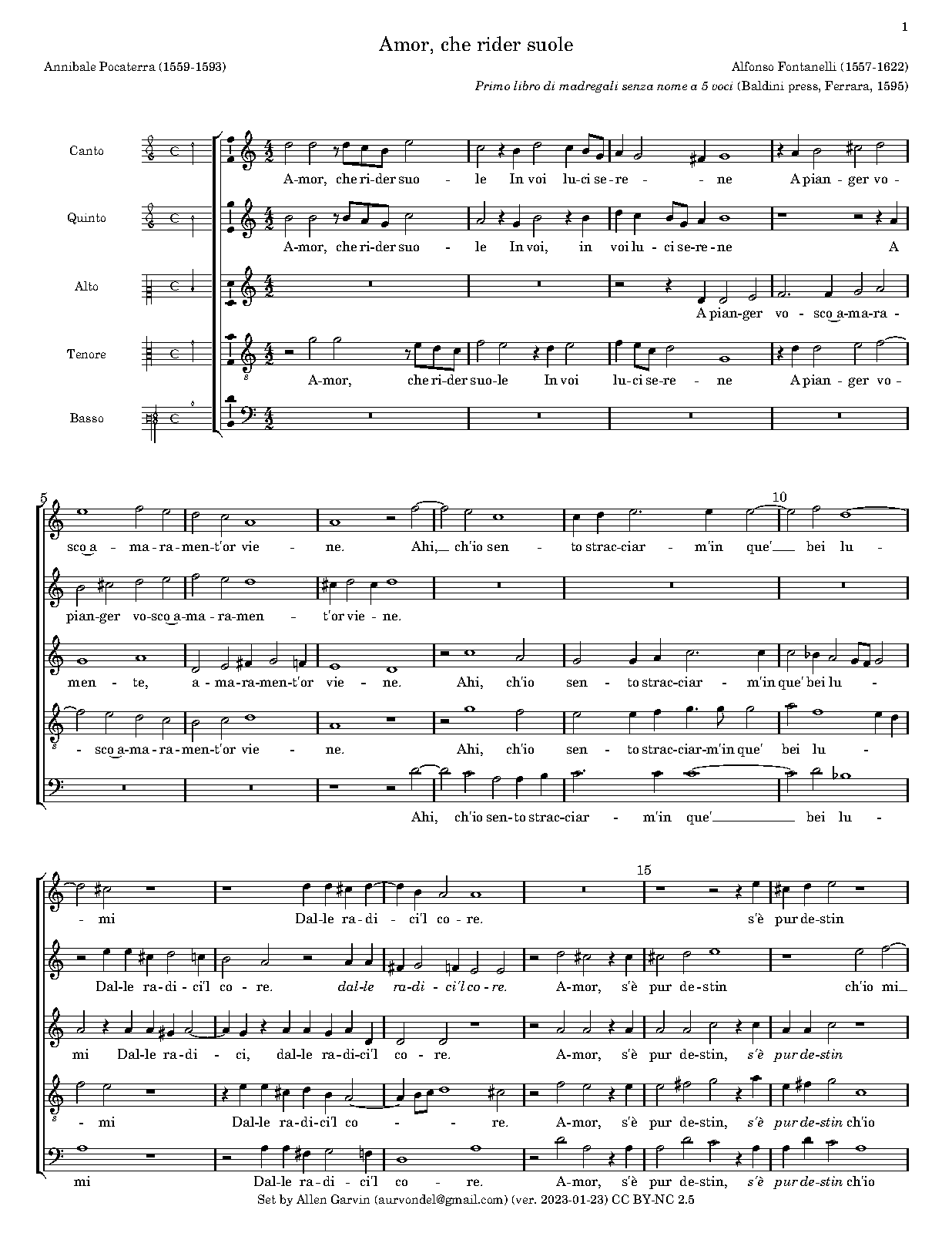 | First Publication. | 1595 in Madrigali à 5 voci, Libro 1 (No.1) |