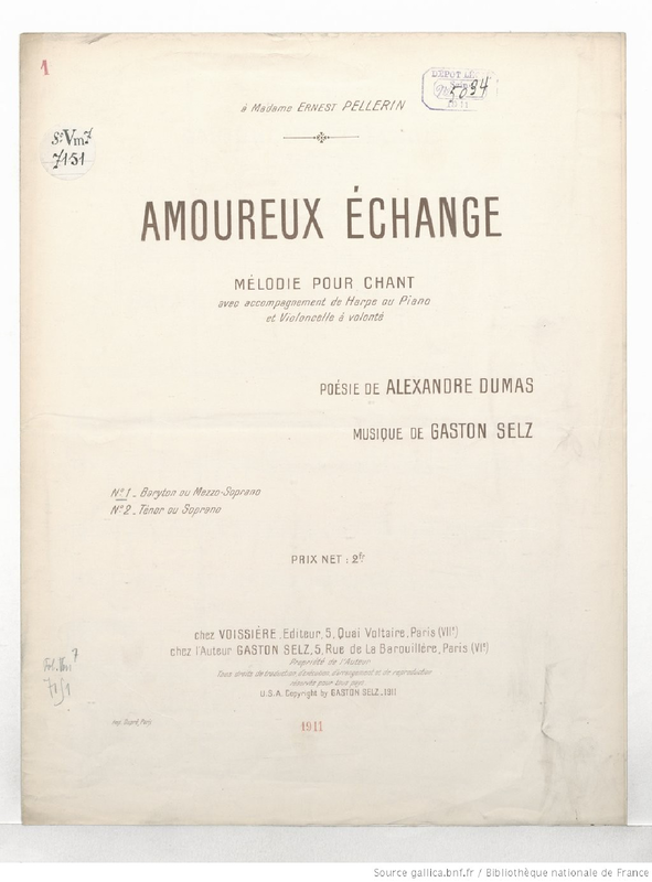 Mélodie pour chant, avec accompagnement de harpe ou piano, et violoncelle à volonté