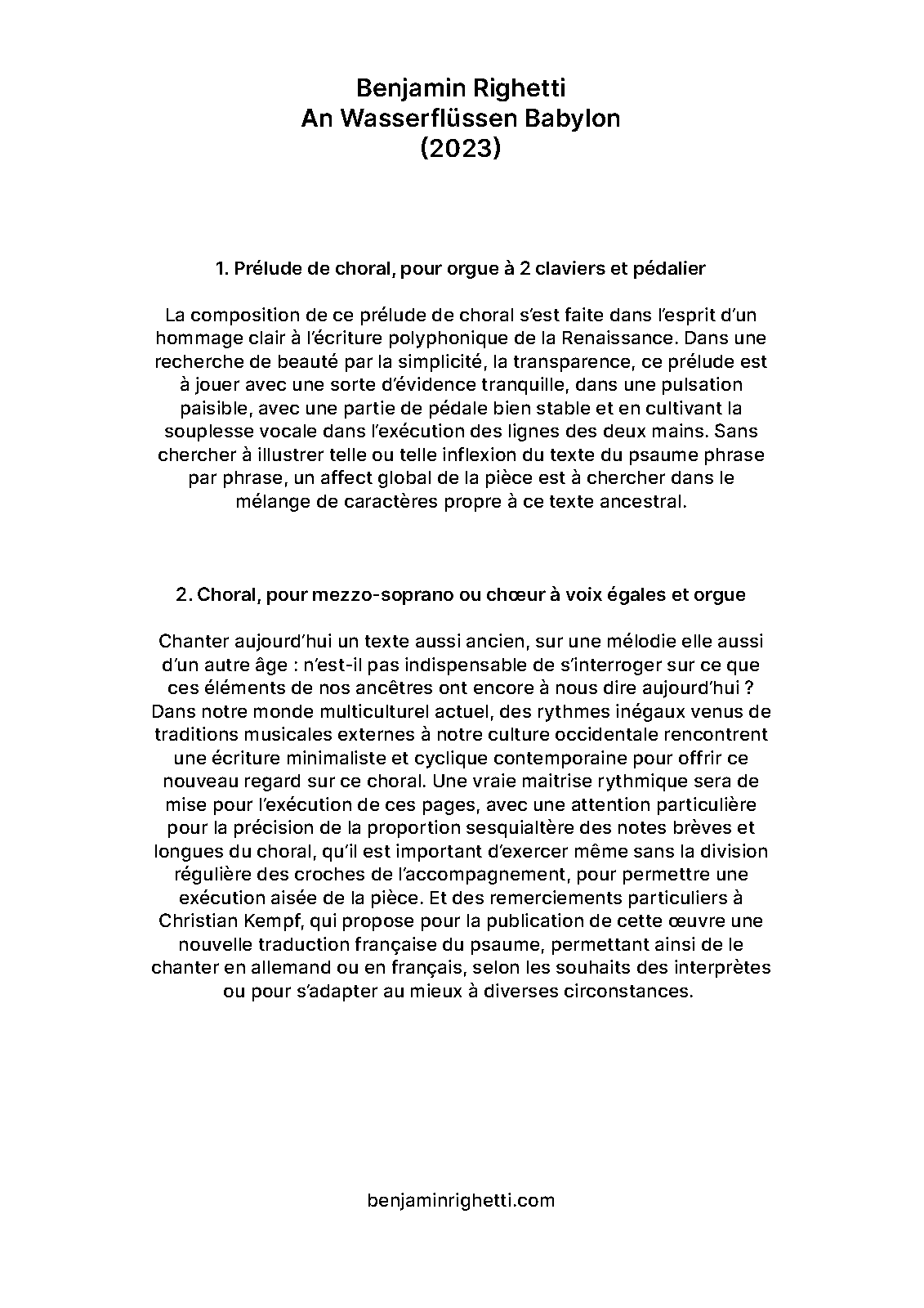 | Librettist | Wolfgang Dachstein (1487–1553), after Psalm CXXXVII Christian Kempff, French translation |