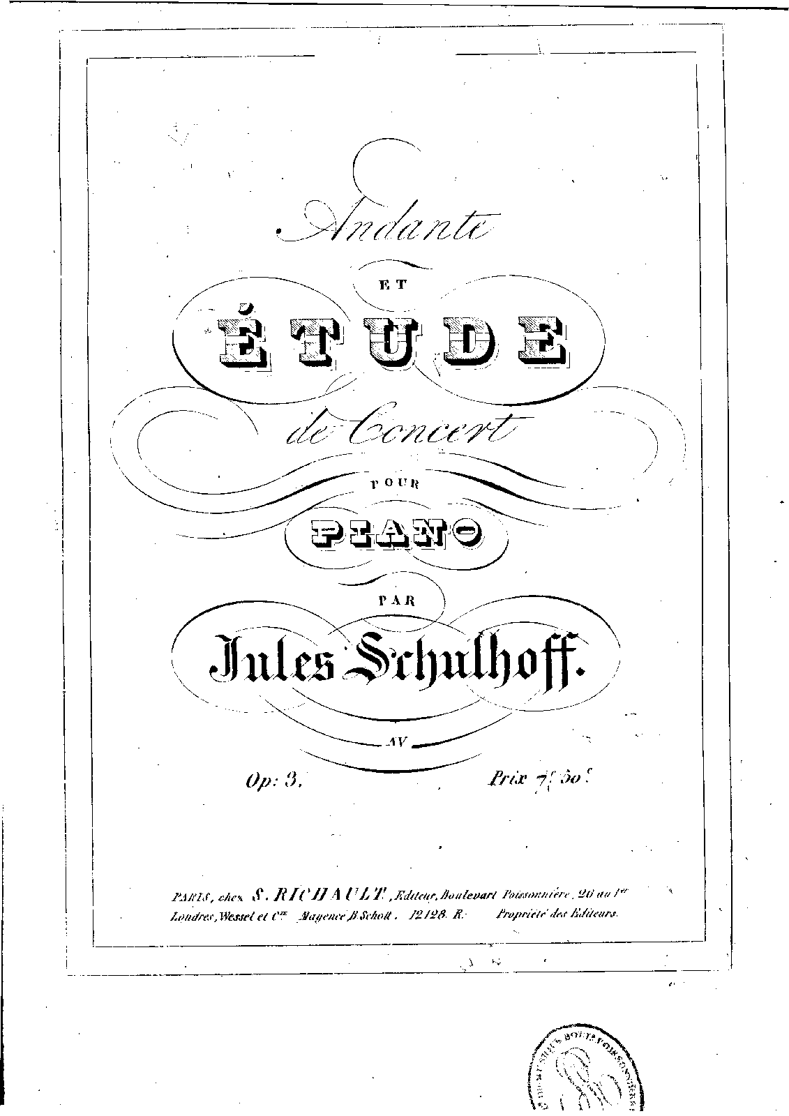 | First Publication. | 1845 – Mainz: Schott / Paris: S. Richault |