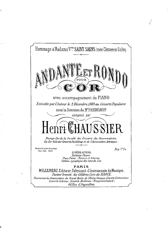Alternative. Title Andante et Rondo pour cor avec accompagnement de piano