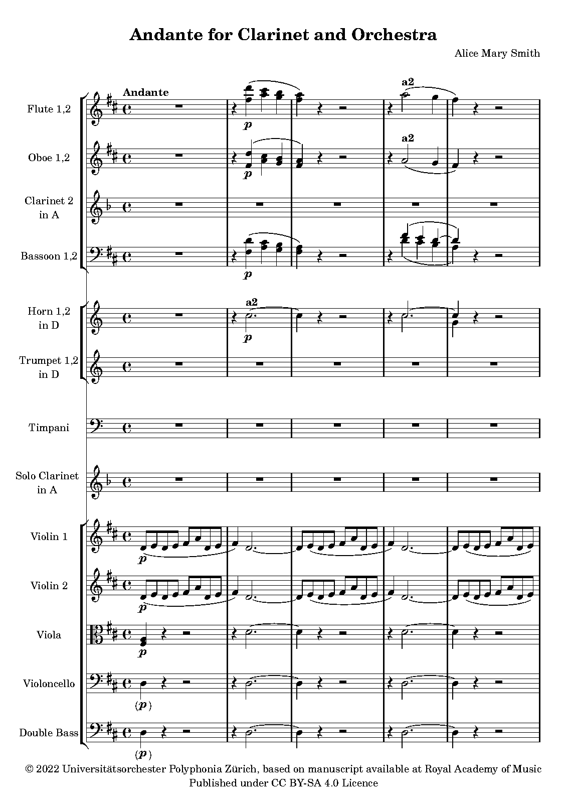 | Work Title | Andante for Clarinet and Orchestra in D major |