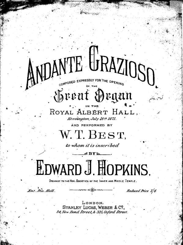 | Dedication | Composed expressly for the opening of the Great Organ in the Royal Albert Hall Kensington |