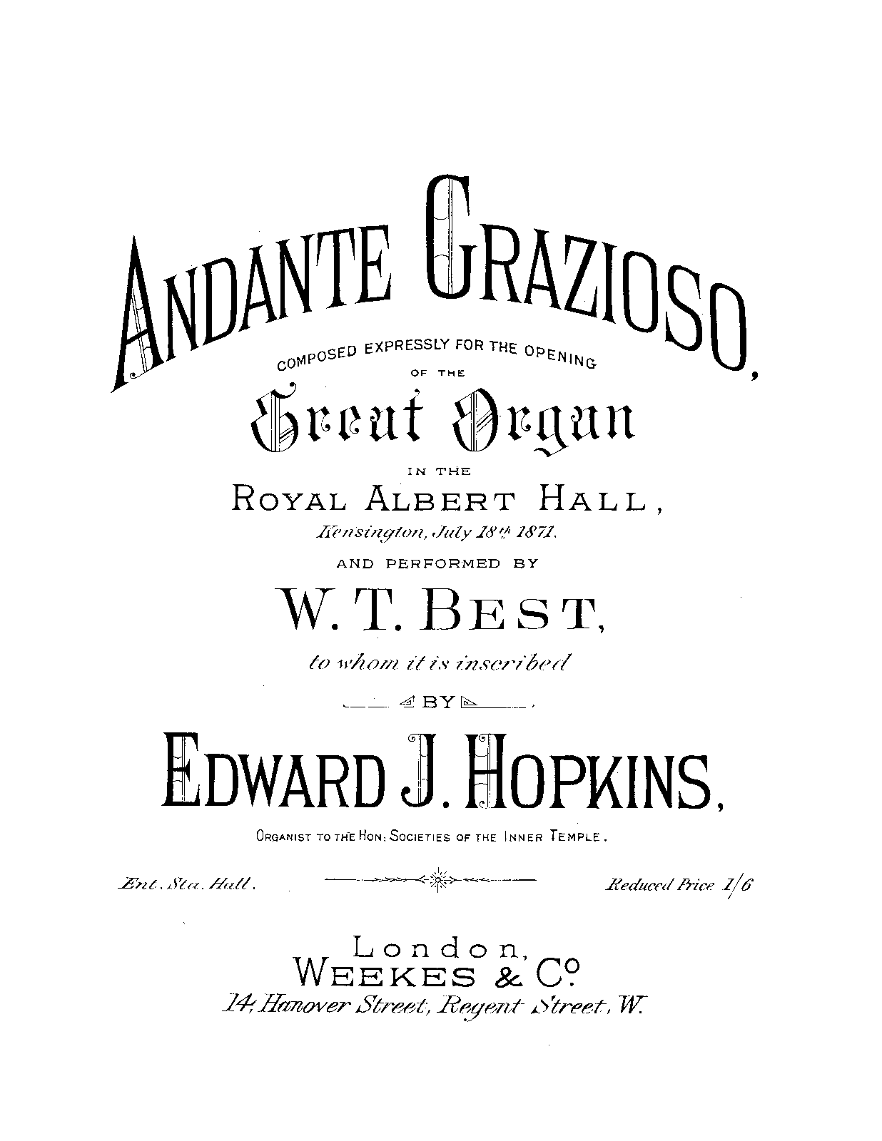 | Extra Information | This piece (at that time still only in manuscript) featured in the first half of the inaugural concert performed by W.T. Best on the organ. |