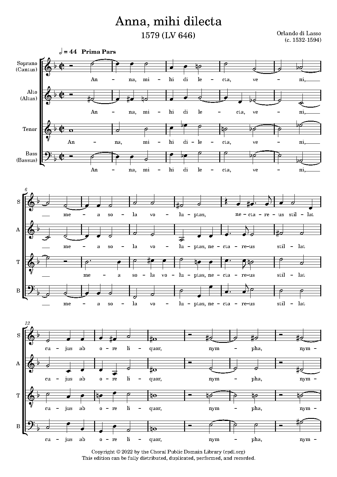 Anna, mihi dilecta, LV 646 (Lassus, Orlande de)