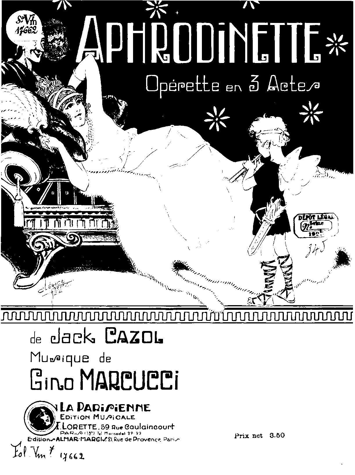 | First Publication | 1922 — Paris: G. Lorette (selections in vocal score) |