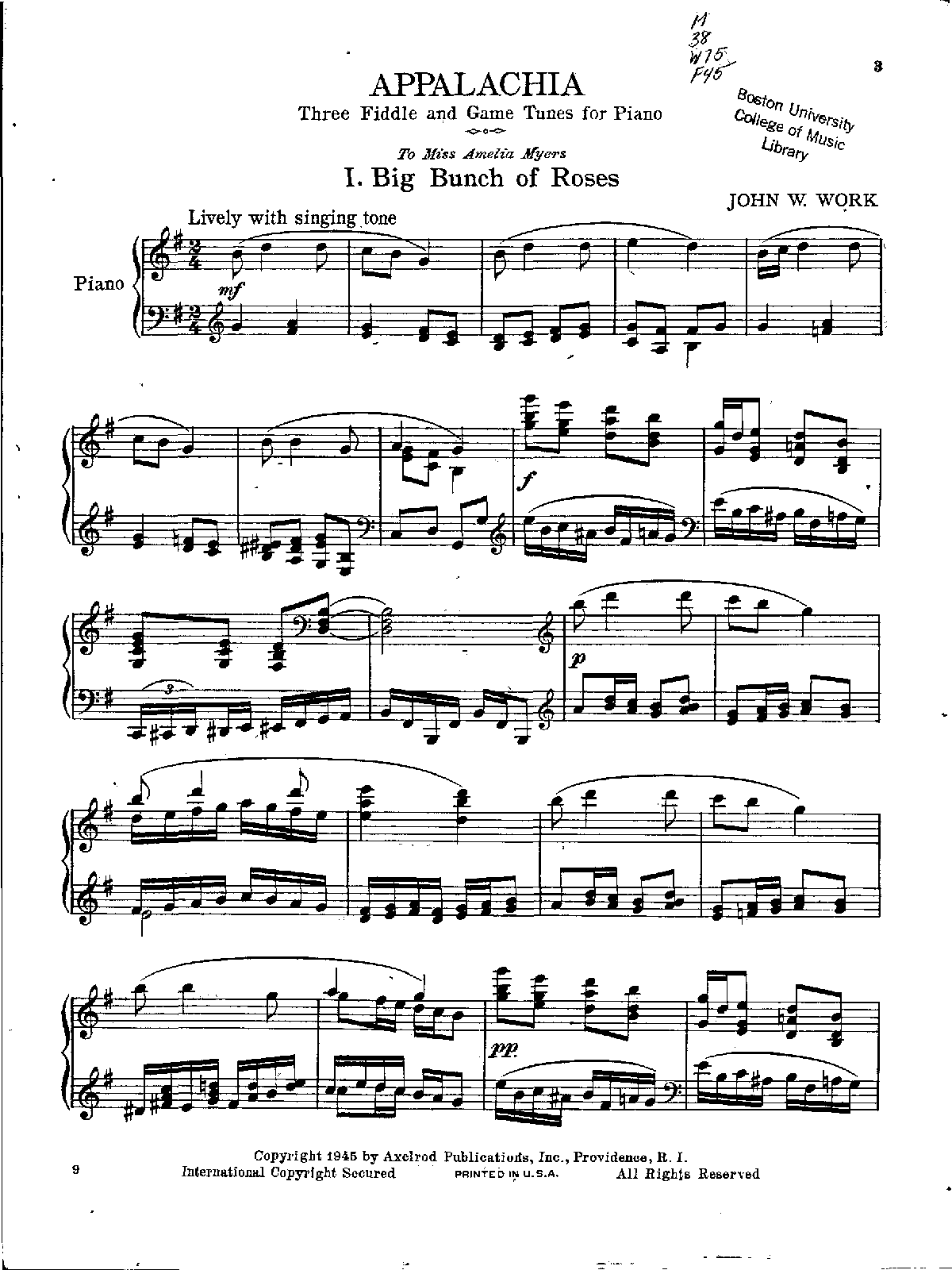 | Alternative. Title | Appalachia: Three Fiddle and Game Tunes for Piano |