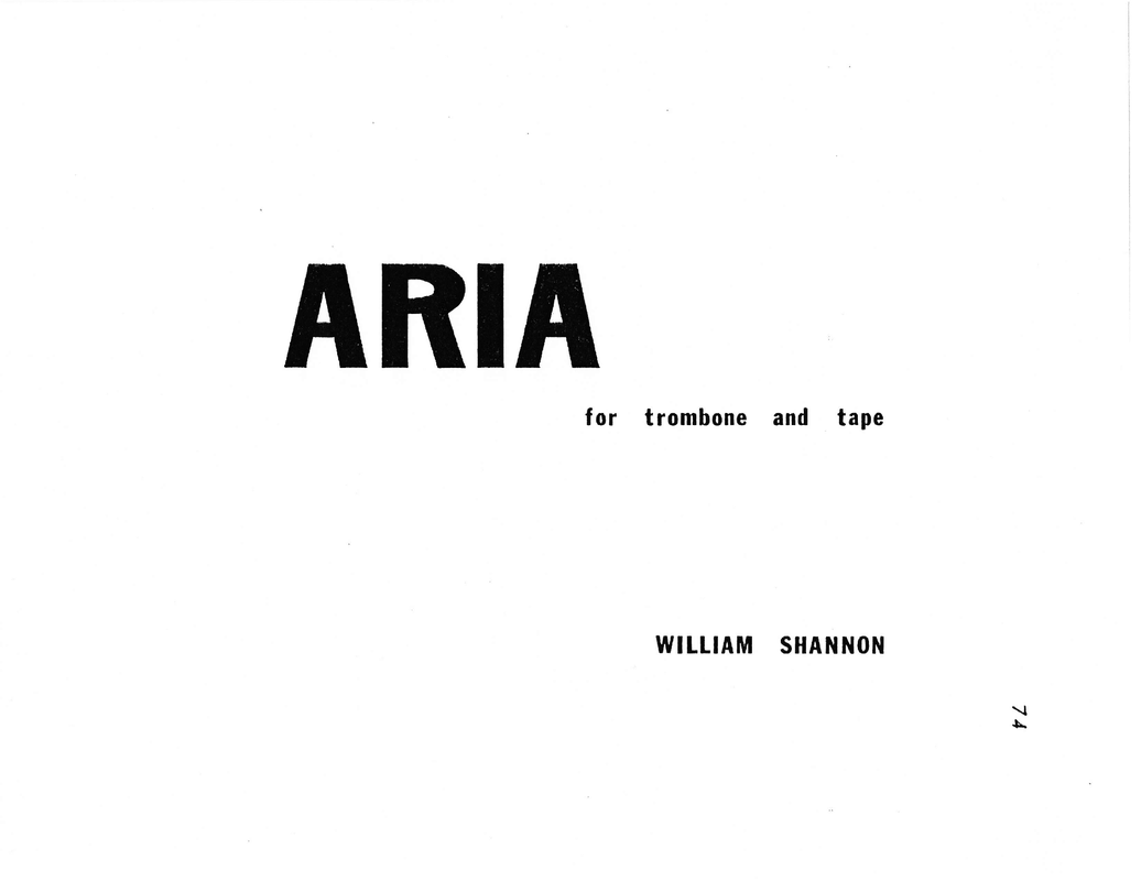 While I may have taken some liberty with the term “aria” in the title of this work, the concept of the dramatic-expressive vocal solo has had some influence in its formation. The electronic sounds recorded on tape may be appreciated both as musical accompaniment to the trombone and as “aural scenery”, setting mood and environment in a role similar to the stage set and lighting of opera.