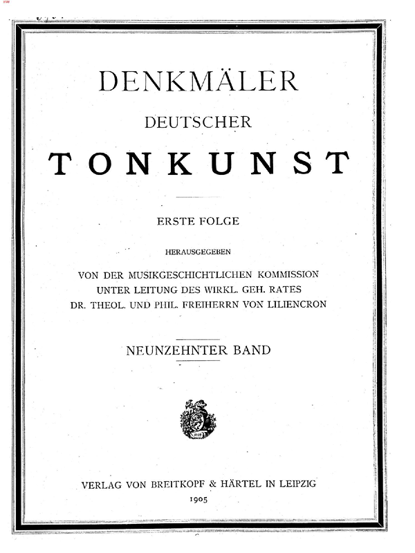 Publisher. Info. Denkmäler deutscher Tonkunst, Erste Folge; Bd.19