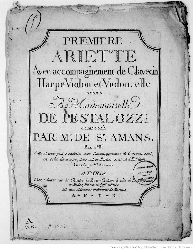 | Alternative. Title | Première ariette avec accompagnement de clavecin, harpe, violon et violoncelle. |