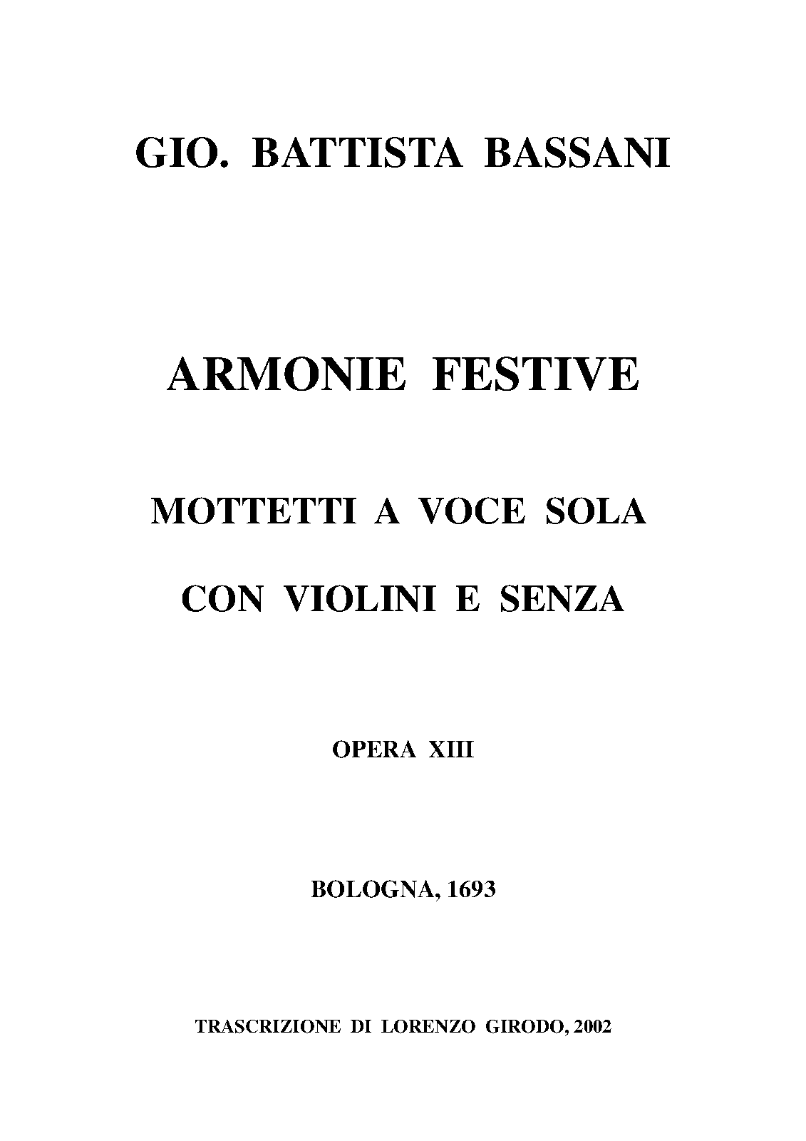 Armonie Festive Mottetti a voce sola con Violini e senza
