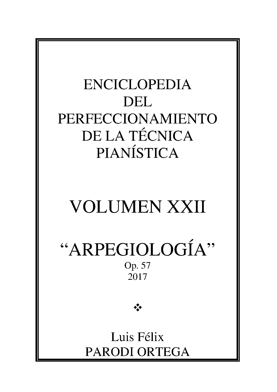 | Extra Information | ARPEGIOLOGÍA OP. 57. ES EL VOLUMEN XXII DE MI "ENCICLOPEDIA DEL PERFECCIONAMIENTO DE LA TÉCNICA PIANÍSTICA".