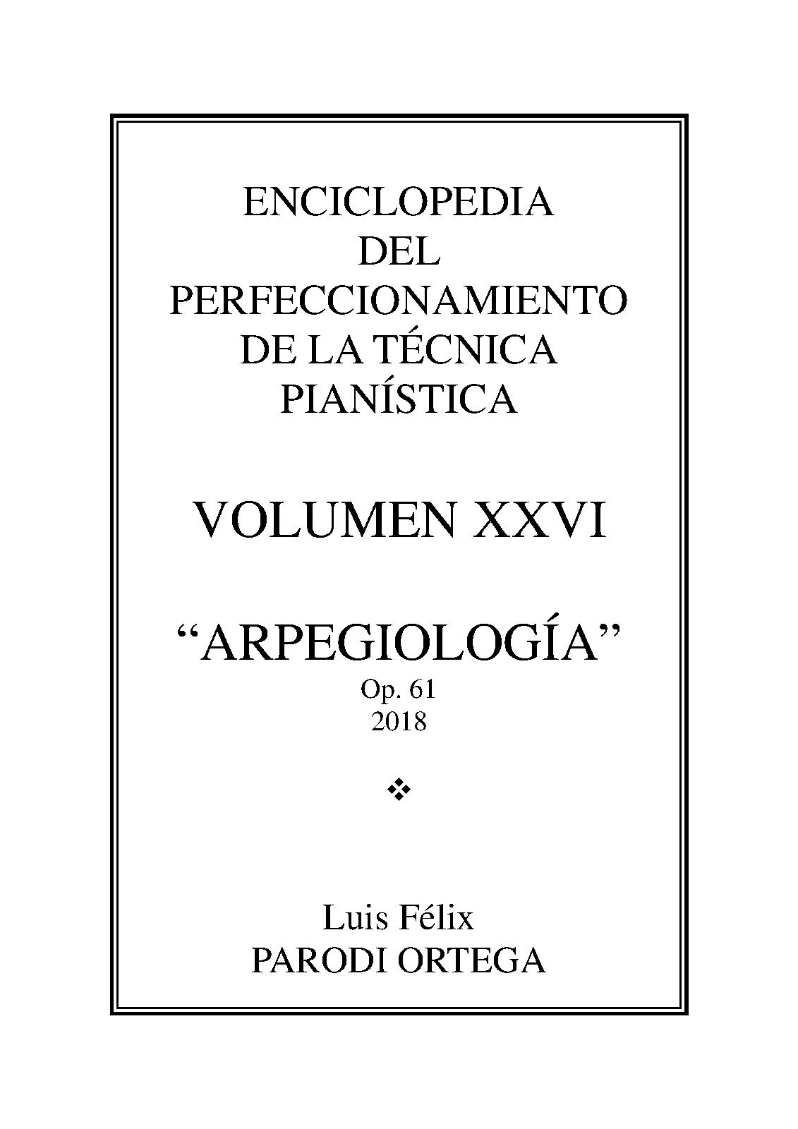 | Extra Information | ARPEGIOLOGÍA OP. 61 ES EL VOLUMEN XXVI DE MI "ENCICLOPEDIA DEL PERFECCIONAMIENTO DE LA TÉCNICA PIANÍSTICA".