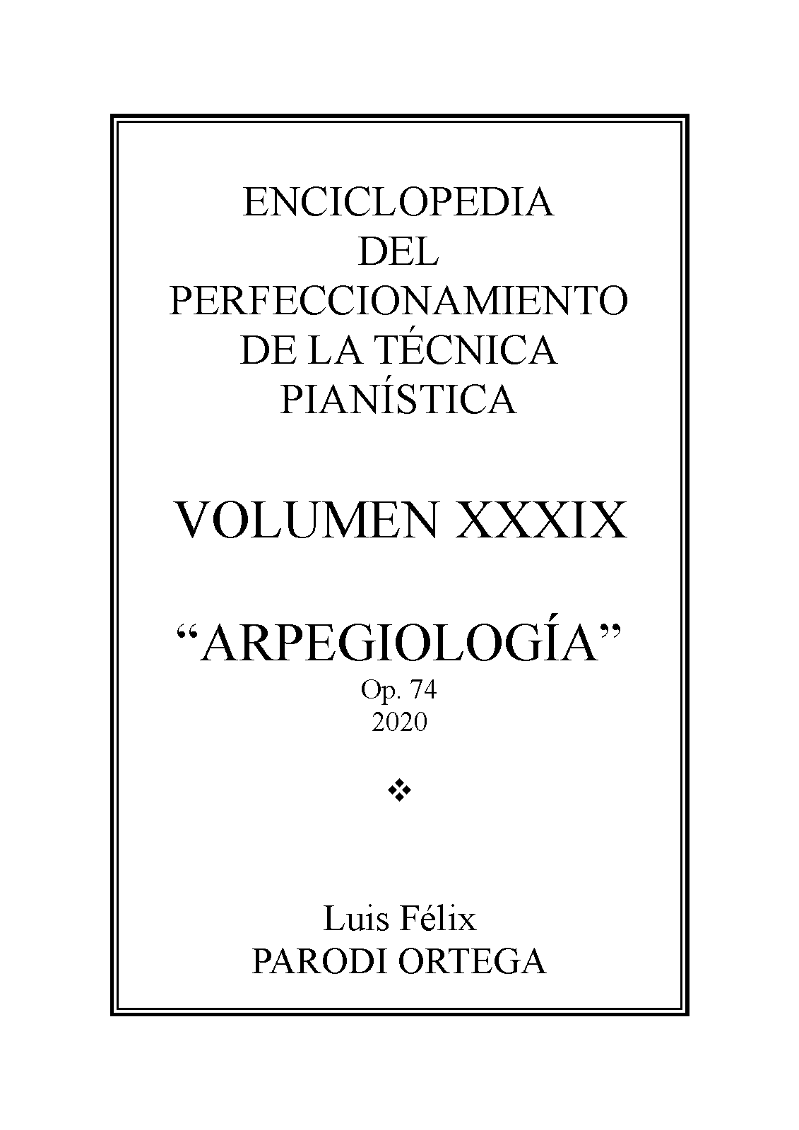 | Extra Information | ARPEGIOLOGÍA OP. 74 ES EL VOLUMEN XXXIX DE MI "ENCICLOPEDIA DEL PERFECCIONAMIENTO DE LA TÉCNICA PIANÍSTICA".