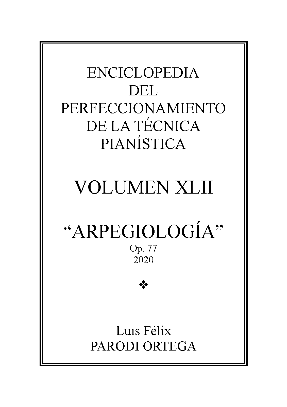 | Extra Information | ARPEGIOLOGÍA OP. 77 ES EL VOLUMEN XLII DE MI "ENCICLOPEDIA DEL PERFECCIONAMIENTO DE LA TÉCNICA PIANÍSTICA".