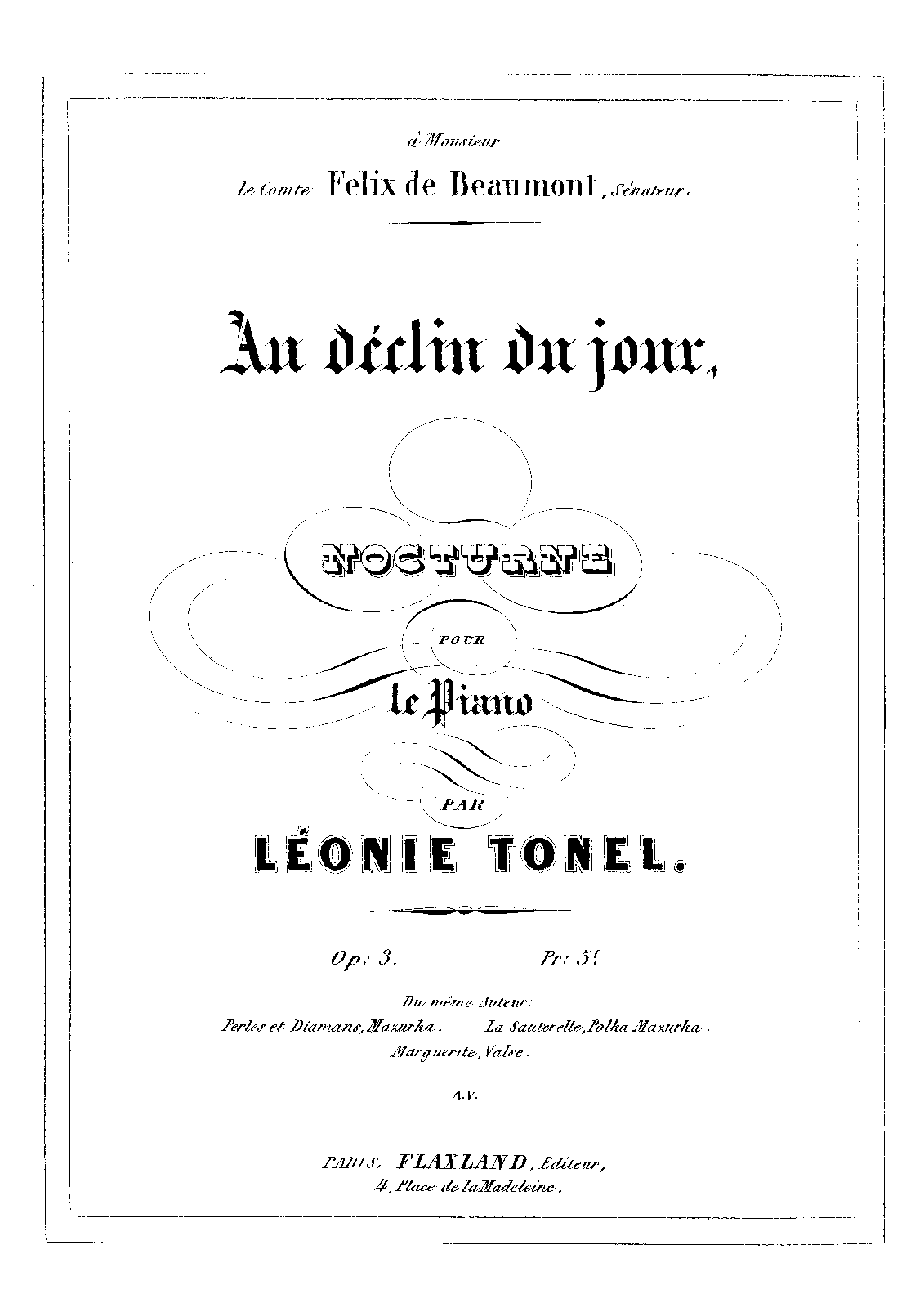 | Dedication | à Monsieur Le Comte Félix de Beaumont, Sénateur |