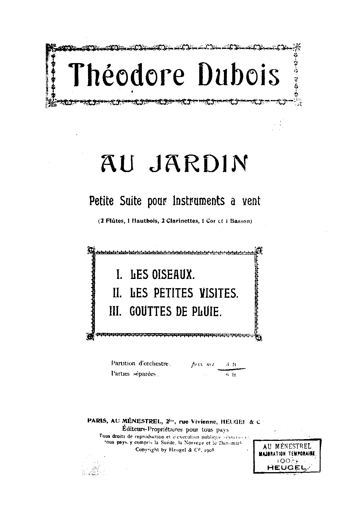 | Extra Information | Dubois arranged Nos.1, 3 and 4 for winds under the same title in 1908. |