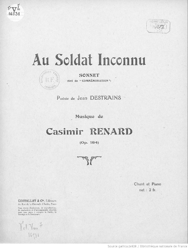 | Librettist | Jean Destrains (fl. 1915), from Commémoration |