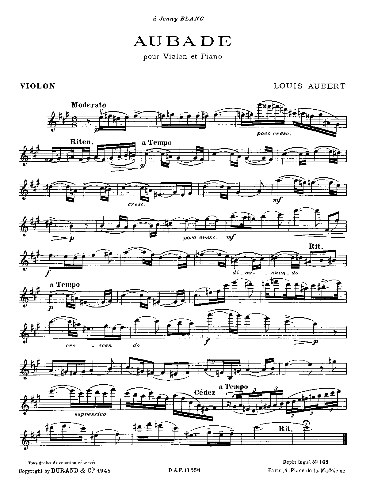 | Genre Categories | Aubades; For violin, piano; Scores featuring the violin; |