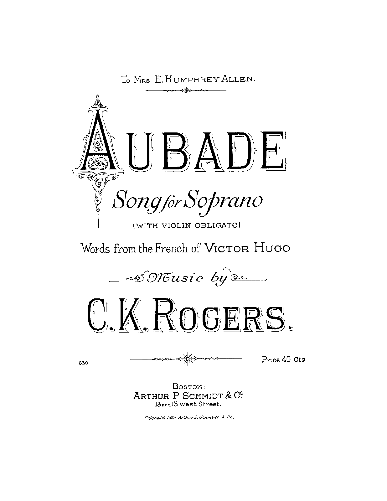 | Genre Categories | Aubades; For voice, violin, piano; For voices with solo instruments; |