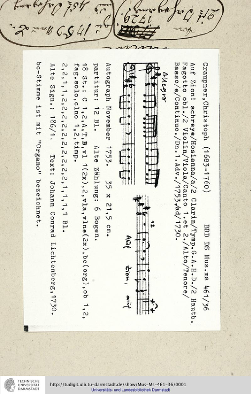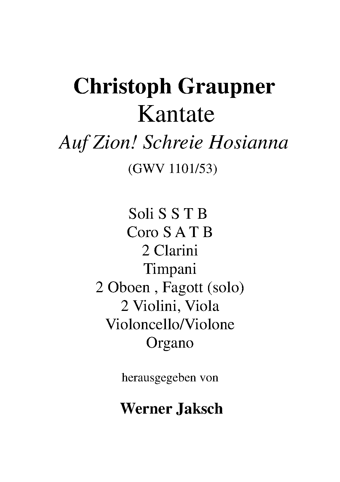 | Work Title | Auf, Zion! Schreÿe Hosianna |