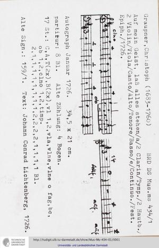 | Work Title | Auf mein Geist lass alles stehen, GWV 1111/26 |