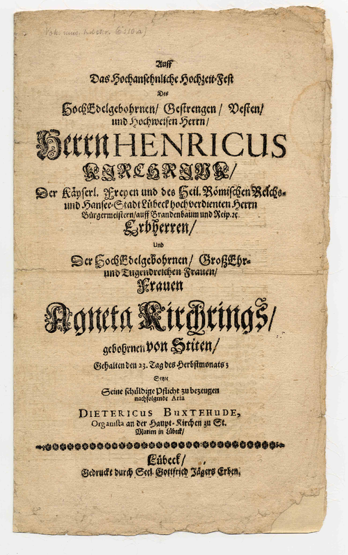| Dedication | Wedding of Heinrich von Kirchring and Agneta von Stiten, Lübeck, 1672 |