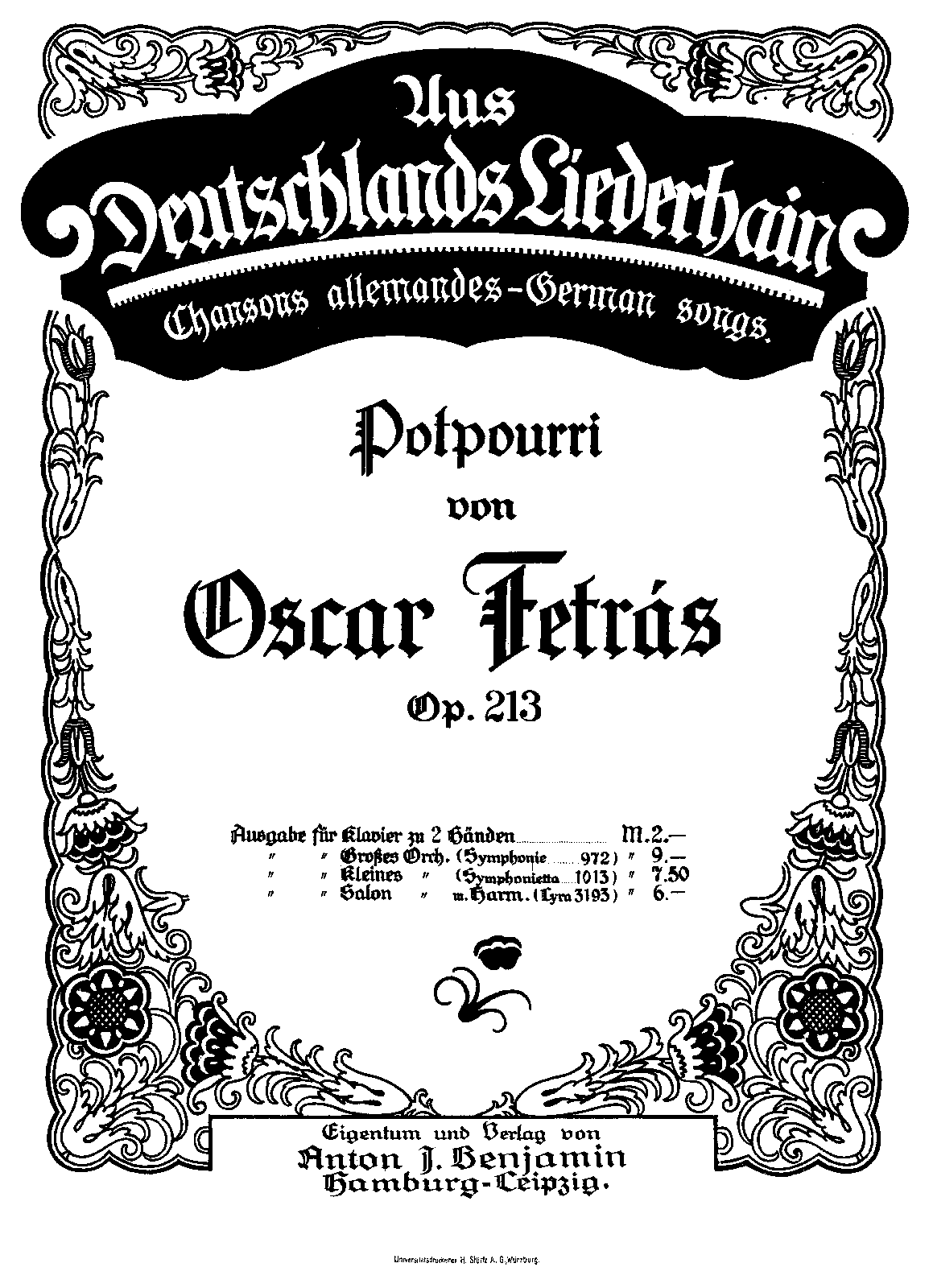 | Extra Information | Based on songs by Franz Abt, Erik Meyer-Helmund, Franz Bendel, Gustav Hölzel, and Robert Schumann. |