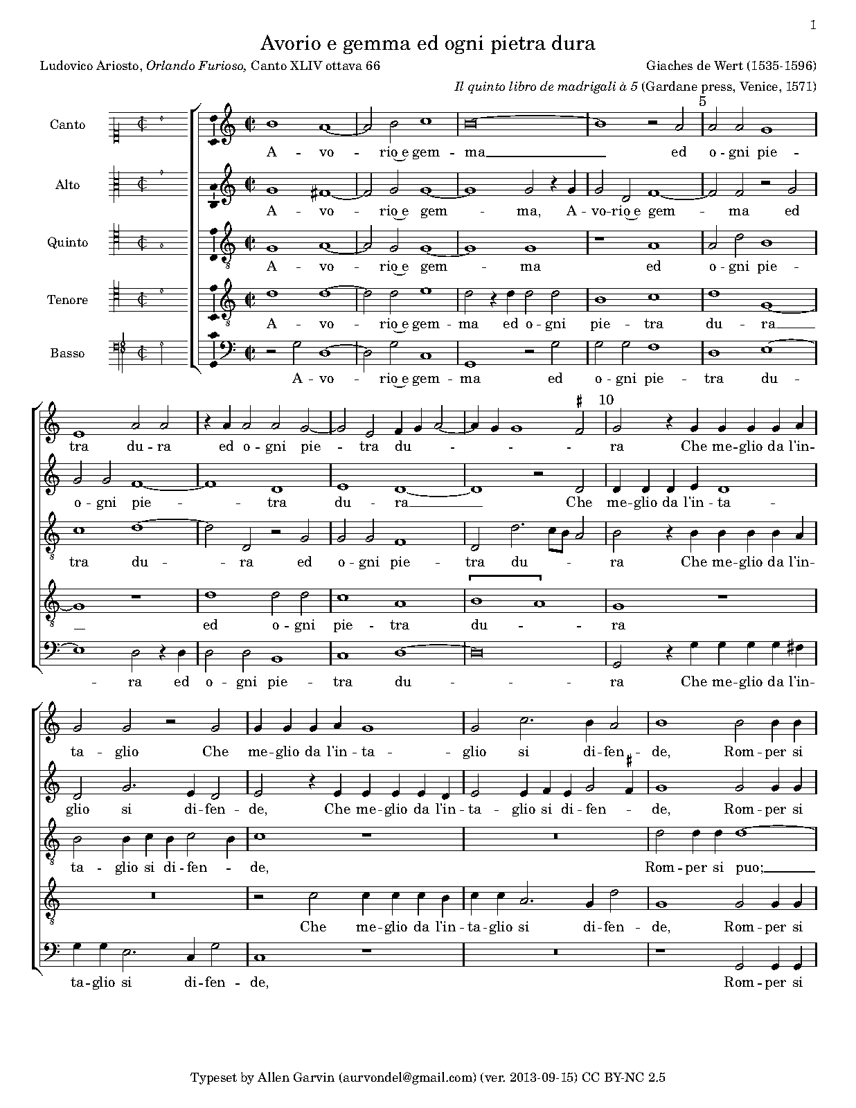 | First Publication | 1571 in Madrigali a 5, 6, et 7 voci, Libro 5 |