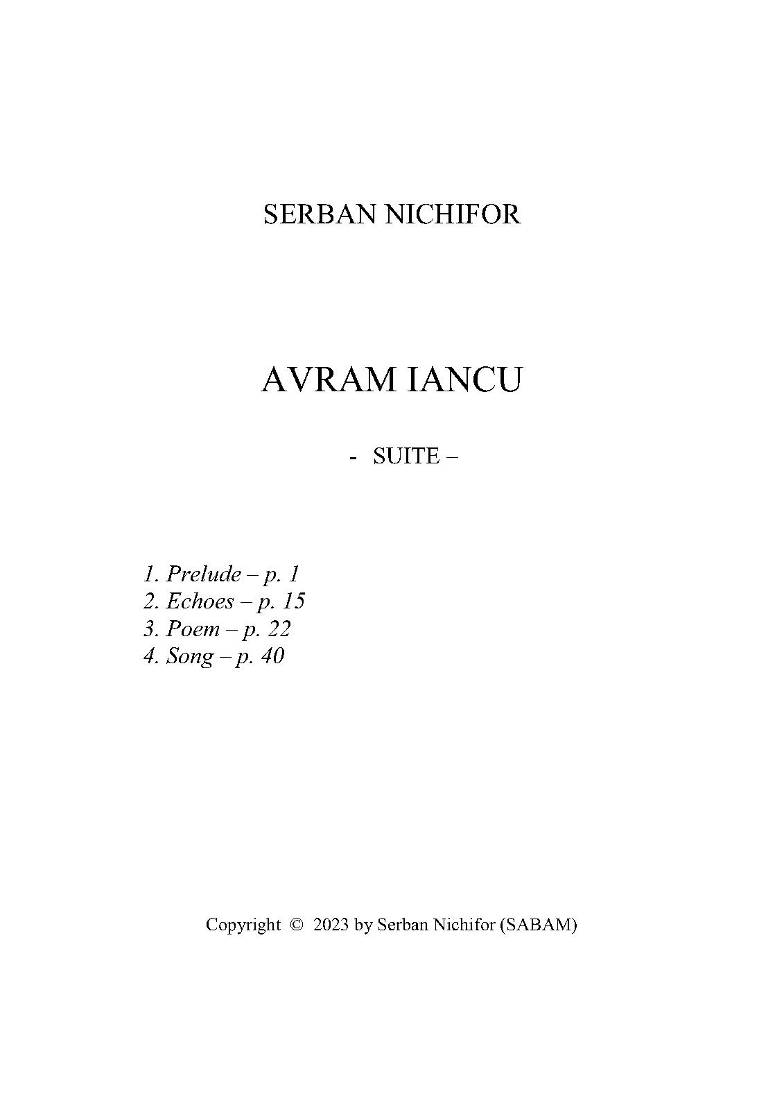 | Composer | Nichifor, Serban |