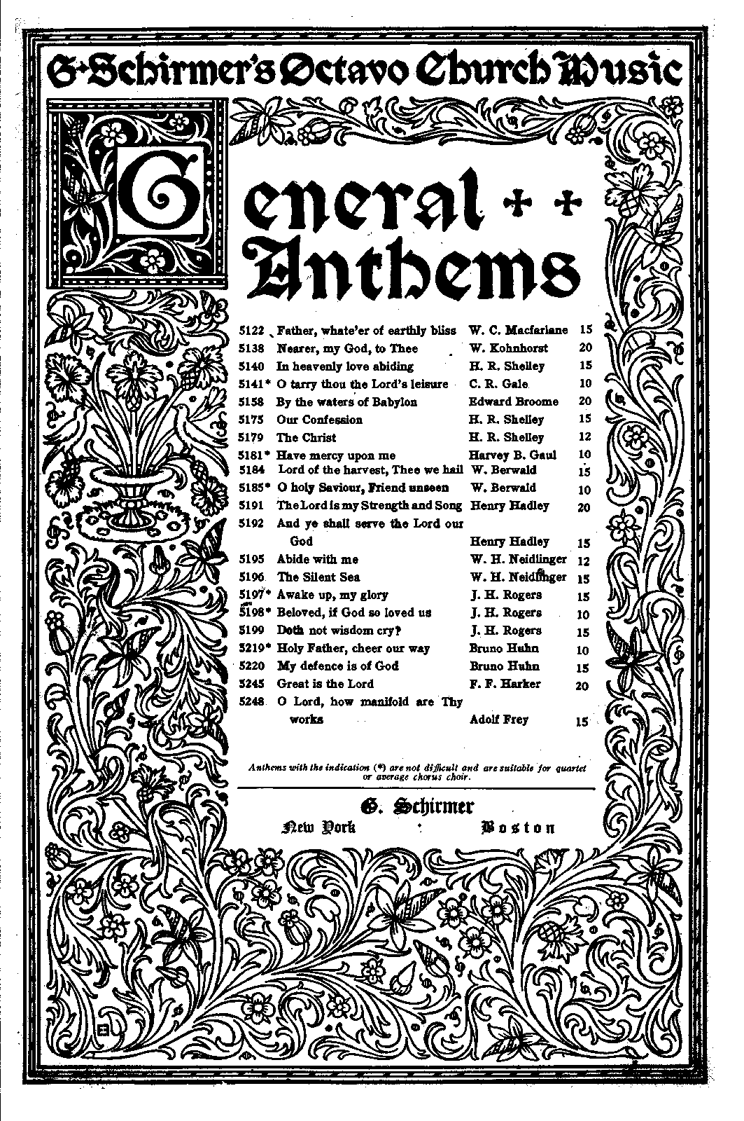 | Genre Categories | Anthems; Religious works; For voice, mixed chorus, organ; |