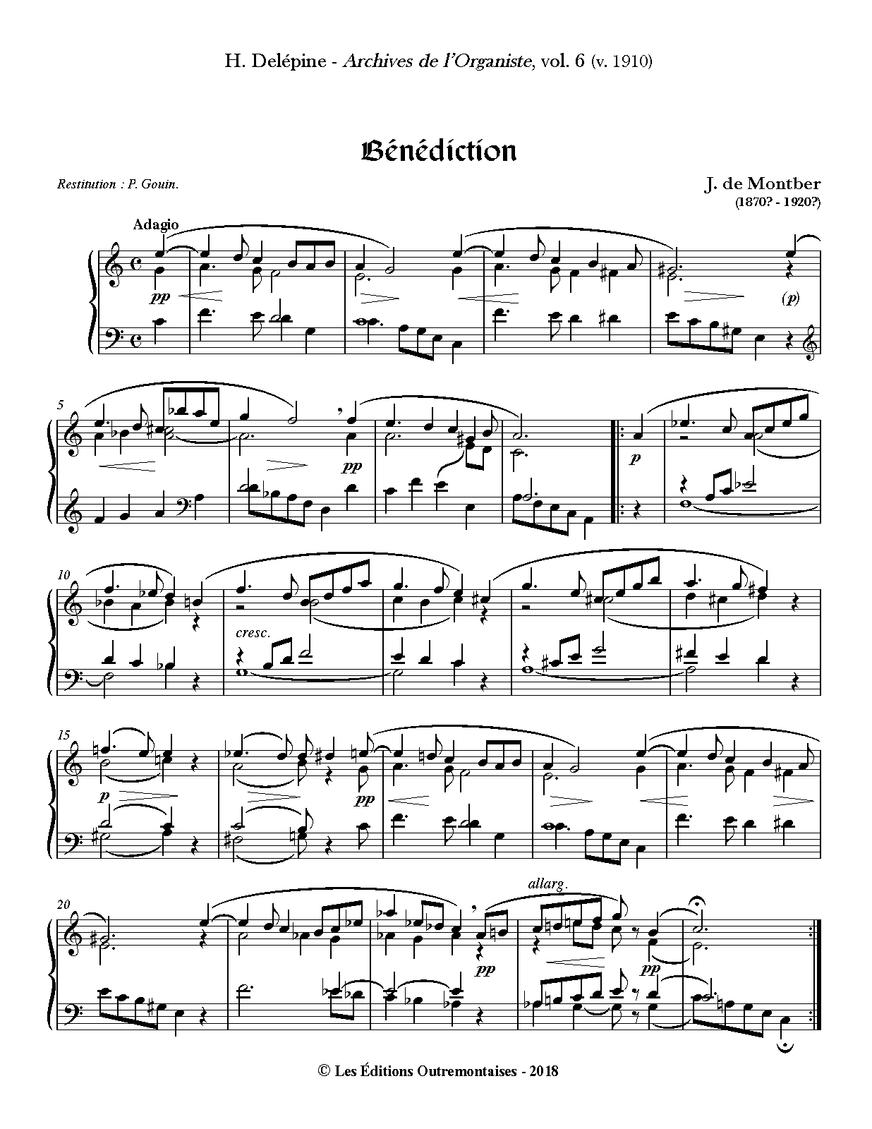 | First Publication | 1910 ca. in H. Delépine, Archives de l'Organiste, vol. 6, Arras |