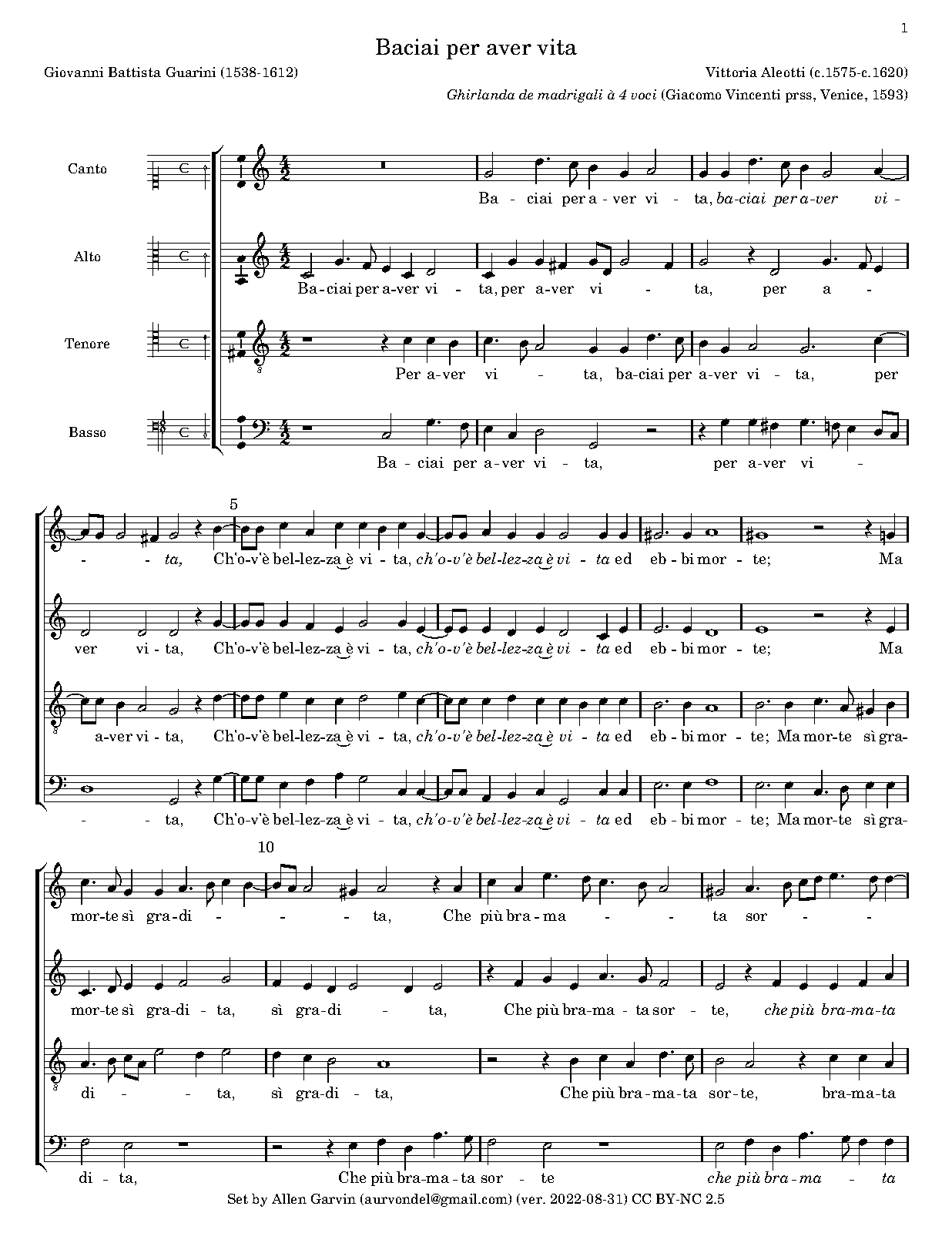 | First Publication | 1593 in Girlanda de madrigali a 4 voci (Venice: Giacomo Vincenti press) |